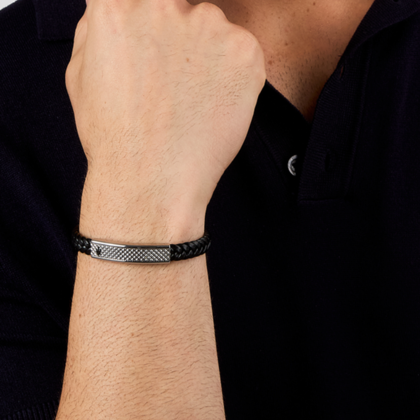 PULSEIRA MASERATI 'LEATHER' AÇO E PELE 'JM525AVE36'
